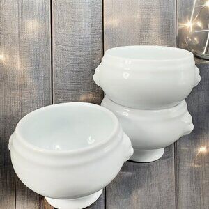 Fortena White Porcelain Double Lions Head Dish Bowl Set 3 Ceramic Stoneware VTG