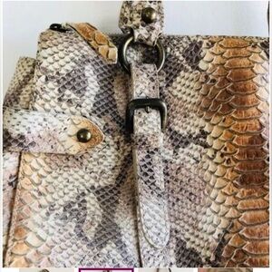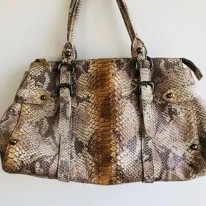 Forth & Towne Tan Calf Leather Snake Print Satchel Handbag Purse Womens Luxury
