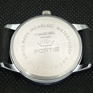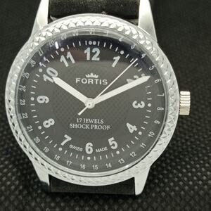 Elevate your style with the Fortis Men's Watch, featuring a sleek black dial and a sophisticated silver case. Perfect for any occasion.