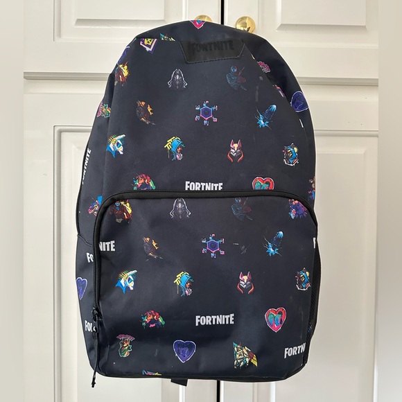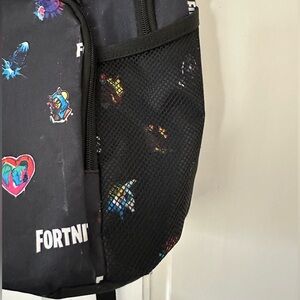 Vibrant Fortnite backpack featuring a multicolor design. Mesh side pocket. Front zip pocket. Adjustable straps. Ideal for school or travel adventures.
