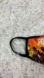 Colorful Fortnite face mask featuring popular characters. Vibrant orange and black design.