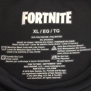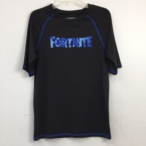 Fortnite Black short sleeve swim shirt with "Fortnite" lettering on chest (far left pictured), XL