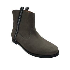 Fortress of Inca Anthropologie Taupe Gray Leather Woven Peruvian Ankle Boots