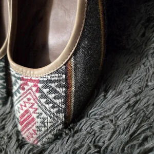 Woven Flats in an Aztec style print with tan leather trim.