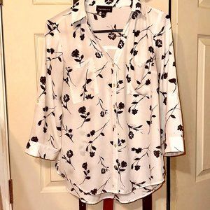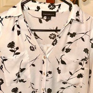 A monochromatic print adds a touch of polish to this fortune + Ivy button-up shirt, the perfect combination of a little bit dressy and stylish. Blouse is worn, but in excellent condition. No stains, tears, or holes.