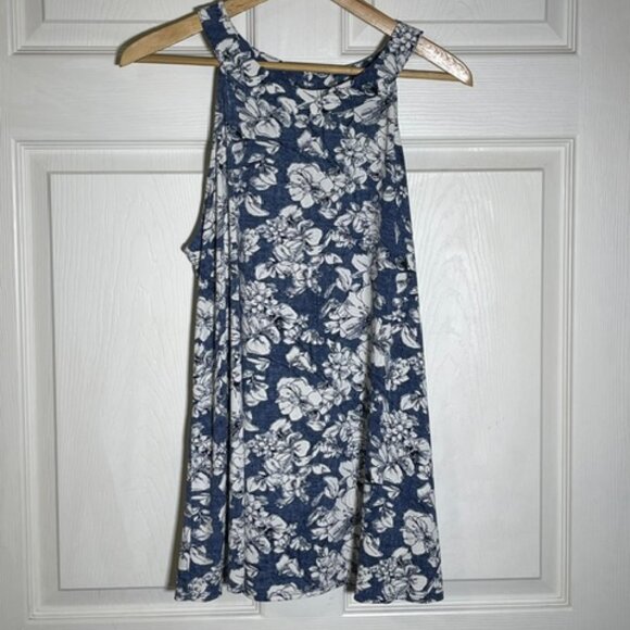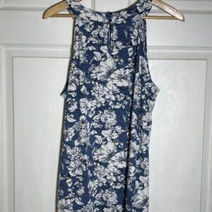 Fortune + Ivy Floral Sleeveless Top Blue White Casual Blouse