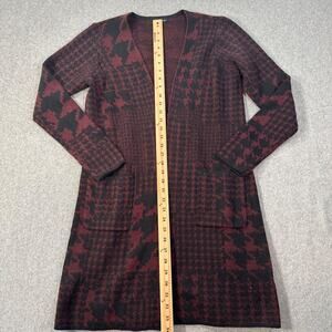 Fortune + Ivy Houndstooth Cardigan Sweaters Women's Small Burgundy/Black Long