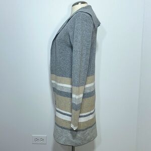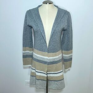 Fortune & Ivy Long Open Cardigan Color Block Neutral Cozy Knit Wear Relaxed Fit