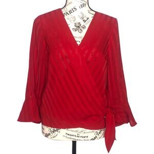 Fortune + Ivy SMALL Stitch Fix Semi-Sheer Stripe Front Tie Wrap Blouse NWT