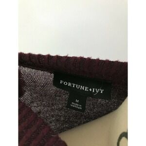 This is a maroon fleece dress by Fortune and Ivy in a size M. Features include a full length sleeves, keyhole neck, side pockets, and ribbed neckline. Item is in new with tags condition. Measurements are 36” bust, 35” length.