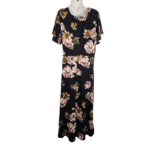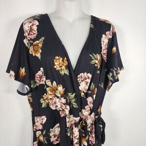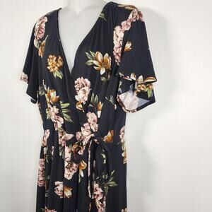 Fortune + Ivy Stitch Fix Women Brush Knit Maxi Wrap V Neck Dress 2X Black Floral