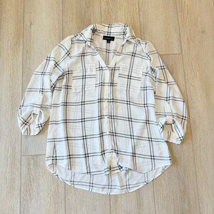 π€ Fortune + Ivy White & Black Windowpane Plaid Blouse β Size M π€