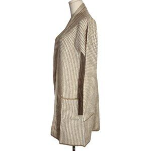 Fortune & Ivy White & Taupe Stripped Long Open Cardigan Women's Size L