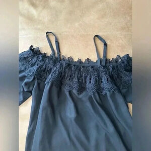 Fortune + Ivy Winkly Crochet Trim Blouse Black NWT Size Small