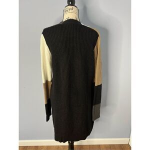 Fortune + Ivy Women's Large Black Brown Colorblocked Cardigan Sweater Open Front
