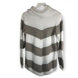 Fortune ivy sweater tan and white turtleneck king sleeves, comfortable, two types of knitting.