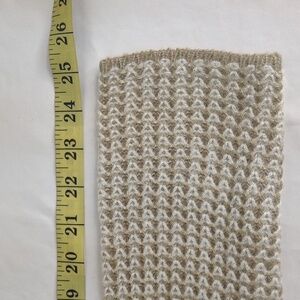 Fortune + Ivy tan and white long knit open cardigan with pockets, size L, NWOT
