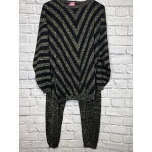 Fortune Knits Inc Vintage 80s 2 Piece Black & Gold Metallic Sweater Joggers LG