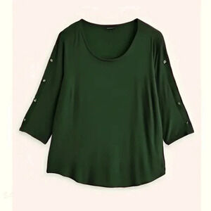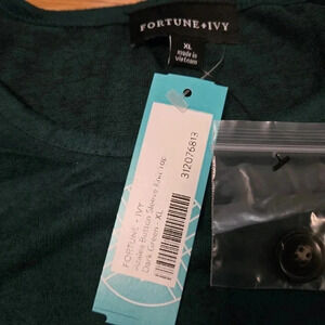 Fortune and Ivy Dark Green knit Women's Top with Button Detail Size XL NWT