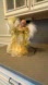 In excellent condition as this was used one season. Features light up fiber-optic elements. Angel also lights up and wings move inward and outward. Adorn your holiday tree with this elegant gold angel tree topper. Featuring delicate gold accents and a graceful design, it adds a touch of sophistication to your festive decor.