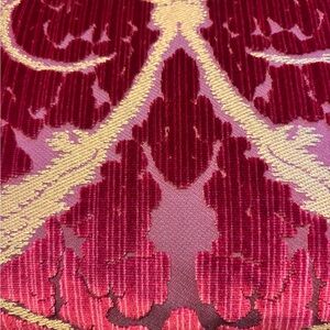 Add a touch of luxury to your home with these large red and gold accent pillows. Perfect for enhancing any living space.$200 each. Bundle and save 20%. Each pillow is 23 inches x 17 inches not including red fringe. Purchased in Venice and in perfect condition.