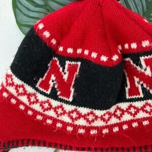 Forty Seven Brand 47 University Of Nebraska Huskers Red Black White Pom Pom Ear Flap Embroidered Nordic Knit Winter Hat