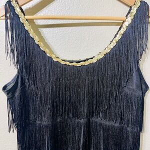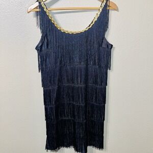 Forum By Rubies Black Tassle Dress Gold Trim Flapper Dress Great Gatsby Sz XS/S