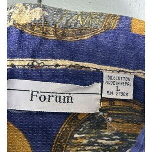 Forum Floral Hawaiian Button Up Shirt Top Men L Blue Orange Yellow Short Sleeve