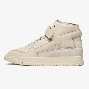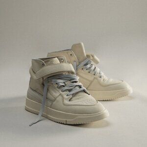 Ventilation holes, leather upper, lacing system, strap closure, textile lining, rubber outsole, padded collar