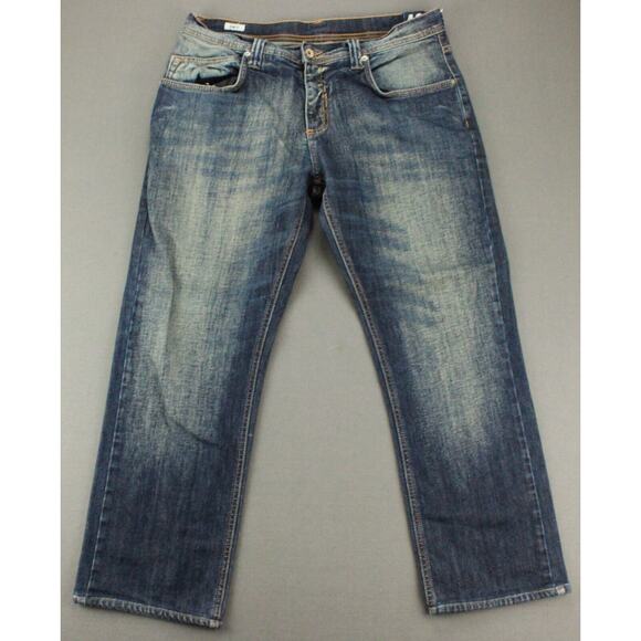Forum slim fit jeans mens 33x27 medium wash denim. Soft cotton blend with slight stretch and natural fading. Comfortable, modern fit made in Brazil.