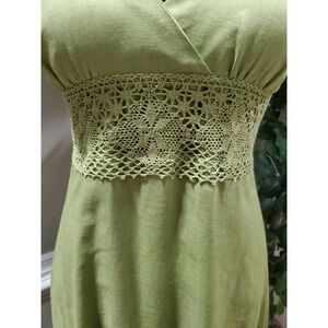 Foschini Women's Green 100% Ramie Sleeve Less V-Neck Long Maxi Dress Size 8.