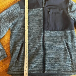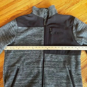 Fossa fleece jacket, size XL. Multiple grey tones, with a logo on the chest. In good used condition, no rips, tears or stains. Please be sure to look at measurements and ask for any additional measurements needed.