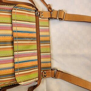 Fossil 100% Leather Beige/ Multicolor Strips Crossbody Bag