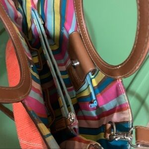 FOSSIL 1934 orange handbag woven straw tote vegan leather satchel crossbody straps