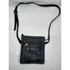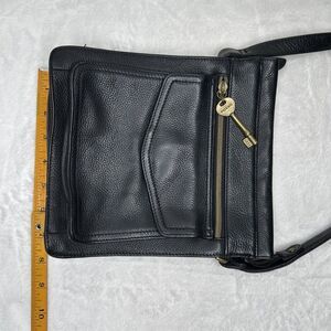 Fossil 1954 Pebbled Black Leather Crossbody Purse Shoulder Bag 75082 With Key 9"
