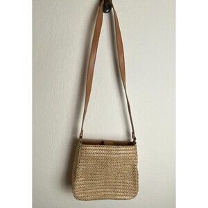 Fossil 1954 Womens Straw-Effect Crossbody Bag Brown Magnetic Handcrafted - 75032