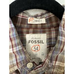 Fossil 54 Vintage Fit Men's Plaid Snap Front Shirt Size Medium