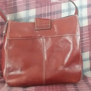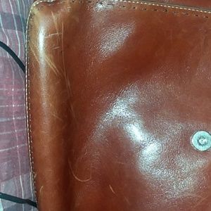 Brown leather Fossil purse with zipper and snap closure. 3 separate compartments, phone pocket. There are a few scratches on the exterior of the purse from use.