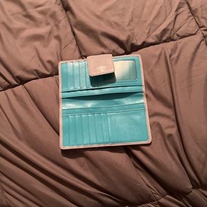 4” x 7” Outside light baby blue. Inside turquoise.