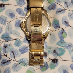 Women's Fossil Cecile multi function Black Dial Gold-tone watch, 40mm case diameter, band width 20mm, item #AM4497. Comes with box and links as shown