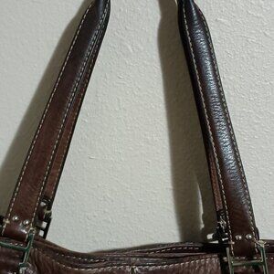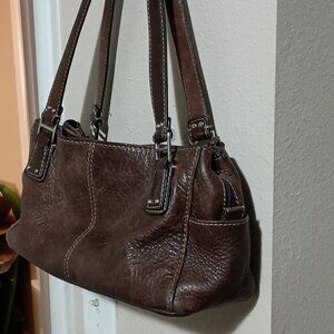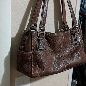 Fossil 75082 Pebble Brown Leather Satchel Hand Bag Multiple Compartments