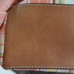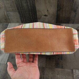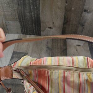 Fossil 90s/Y2K Pastel Stripe Canvas Purse Leather Strap Shoulder Bag