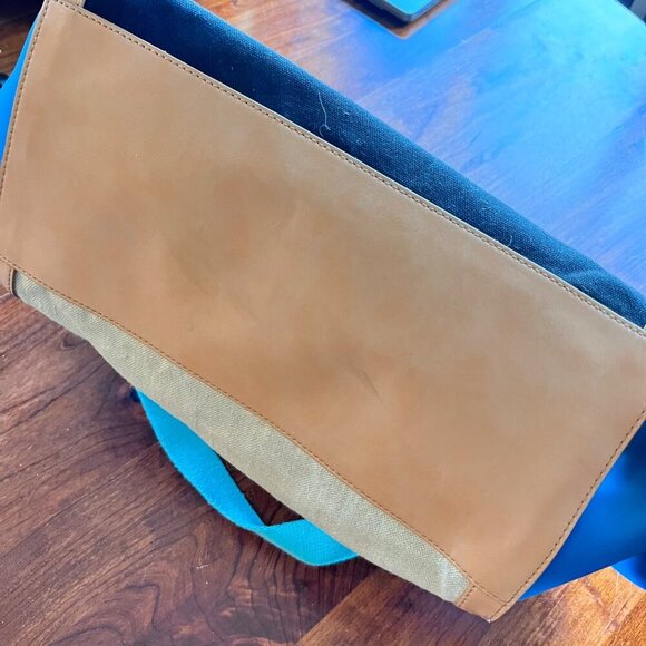 Versatile and durable Fossil tote bag. Stylish color block design made with leather and canvas. Ideal for daily use or travel to the beach.