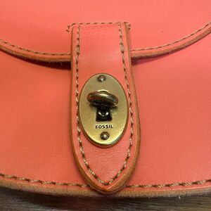Fossil Austin Flap Salmon Saffiano Leather Saddle Bag / Cross Body Purse