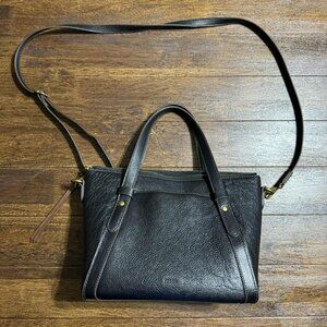 Fossil Avondale Black Leather Satchel Handbag Brass Hardware Excellent