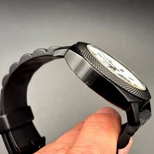The Fossil Machine BQ2060 S/N 251507 delivers a bold industrial aesthetic with a gunmetal stainless steel case, textured bezel, and white dial featuring chronograph subdials and a date window for everyday functionality. Powered by a reliable quartz chronograph movement, this men’s timepiece is paired with a comfortable black silicone strap that has been restored with UV protectant to help prevent fading and future cracking, maintaining its deep finish and flexibility. This preowned piece show minor signs of usage on the case back and straps. The watch has been fully cleaned, fitted with a new battery, gasket lubricated, and tested to ensure excellent performance and dependable timekeeping. Overall case integrity and function are prime, making this a sharp, ready-to-wear example of Fossil’s rugged Machine design.