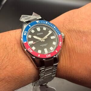 This watch is brand new with original Fossil hang tags still attached and comes in its original Fossil collectible tin, making it a great gift or addition to any Pepsi-bezel or diver-inspired collection.