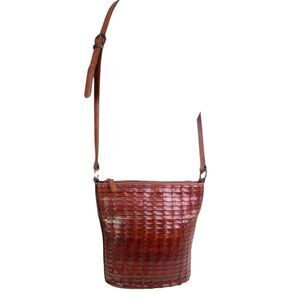 Fossil BRAIDED BROWN GENUINE LEATHER ZIP TOP X-BODY PURSE SHOULDER BAG HANDBAG