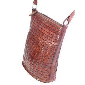 Fossil BRAIDED BROWN GENUINE LEATHER ZIP TOP MEDIUM X-BODY PURSE SHOULDER BAG HANDBAG