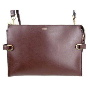 Fossil BROWN GENUINE LEATHER TWO COMPARTMENTS X-BODY SHOULDER BAG HANDBAG PURSE